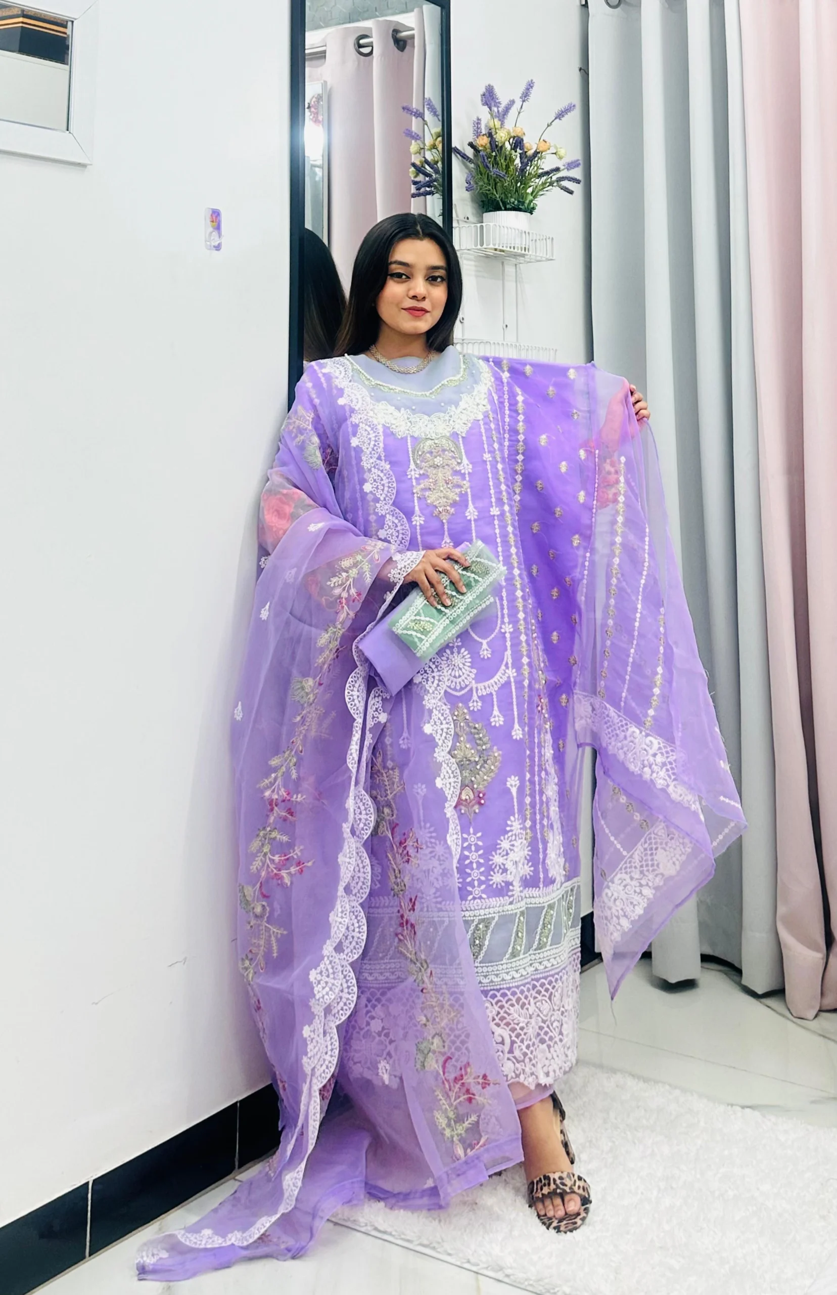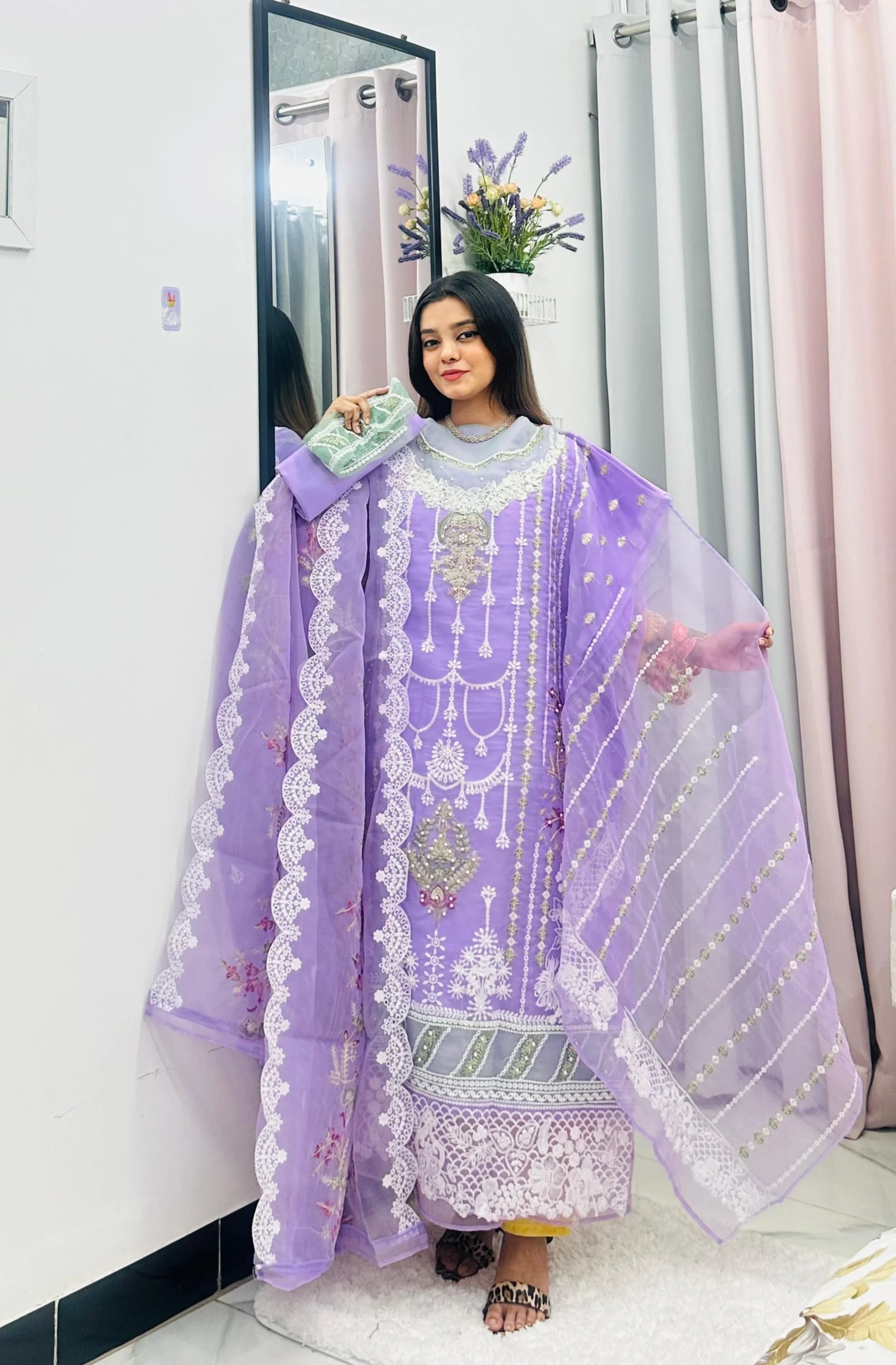 Organza fabric এর উপর সূক্ষ্ম Pearl & Sequin work করা 4 pcs ড্রেস 💎